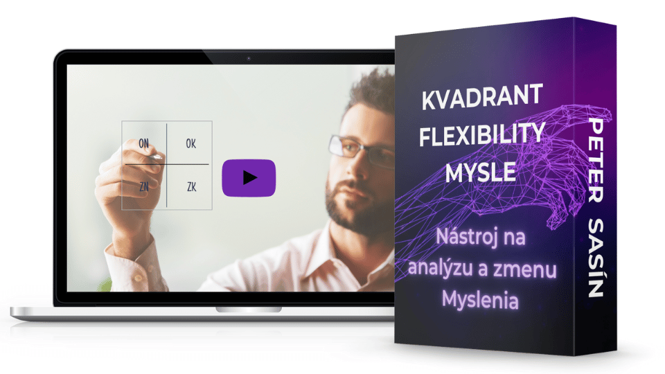Online Kurz: Kvadrant flexibility mysle - nástroj na analýzu a zmenu myslenia (v hodnote 97 EUR) - Získajte nekompromisný vhľad do mysle (vašej aj vašich blízkych), ktorý vám pomôže pochopiť správanie a presvedčenia, ktoré vás formujú. Krok za krokom dostanete návod, ako pomocou revolučného a pritom jednoduchého nástroja, dosiahnuť výrazný posun, ktorý rozšíri myslenie vám, i vašim blízkym.